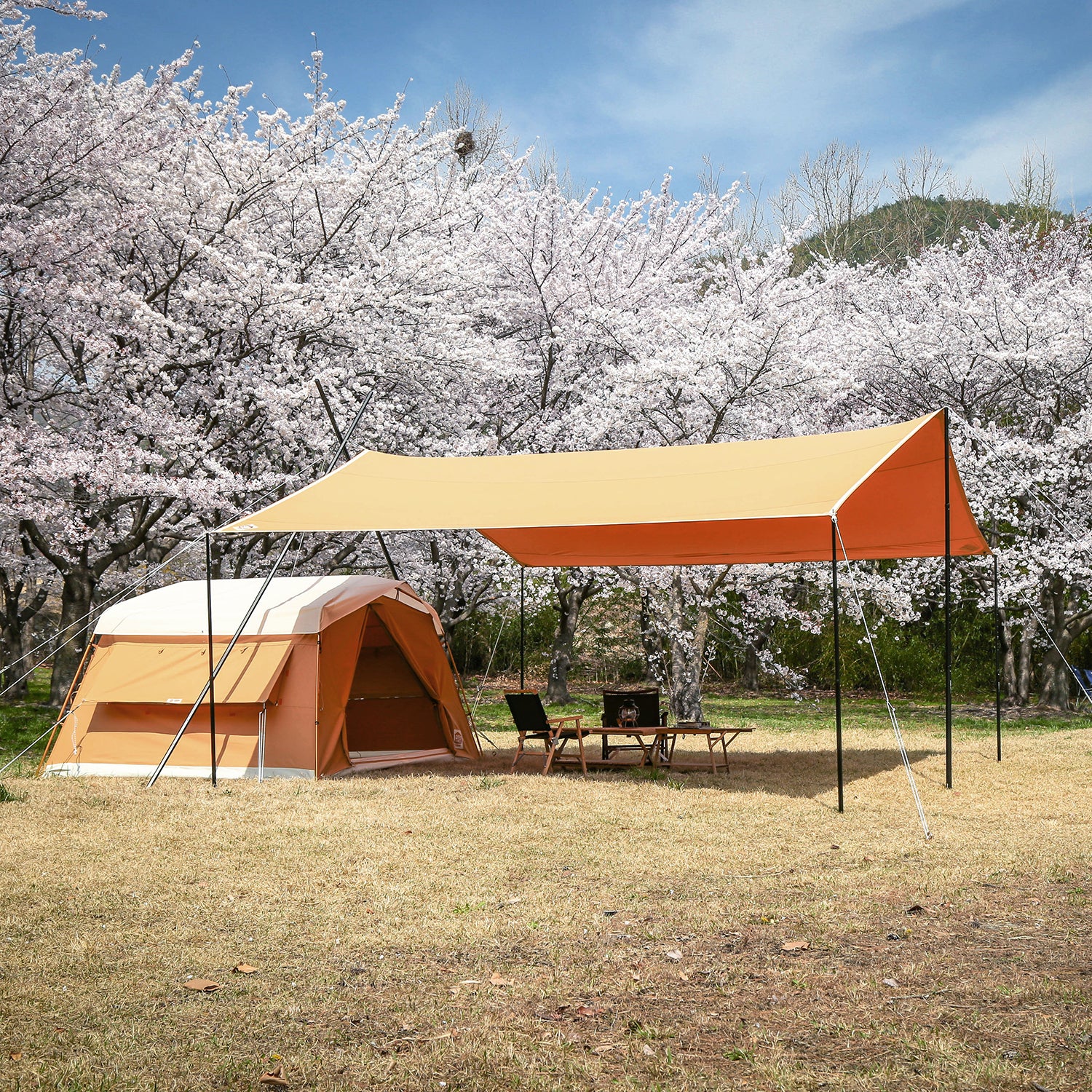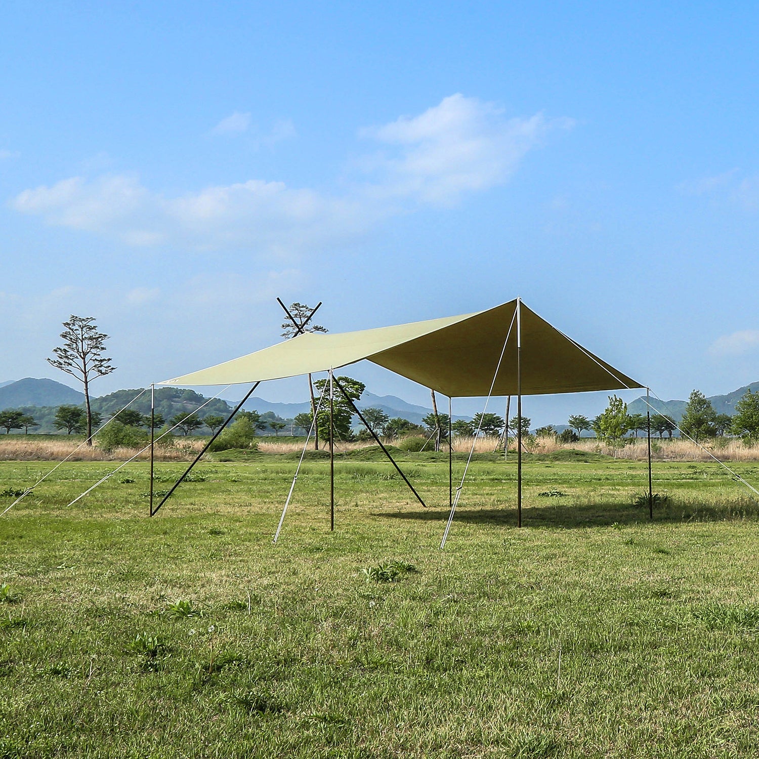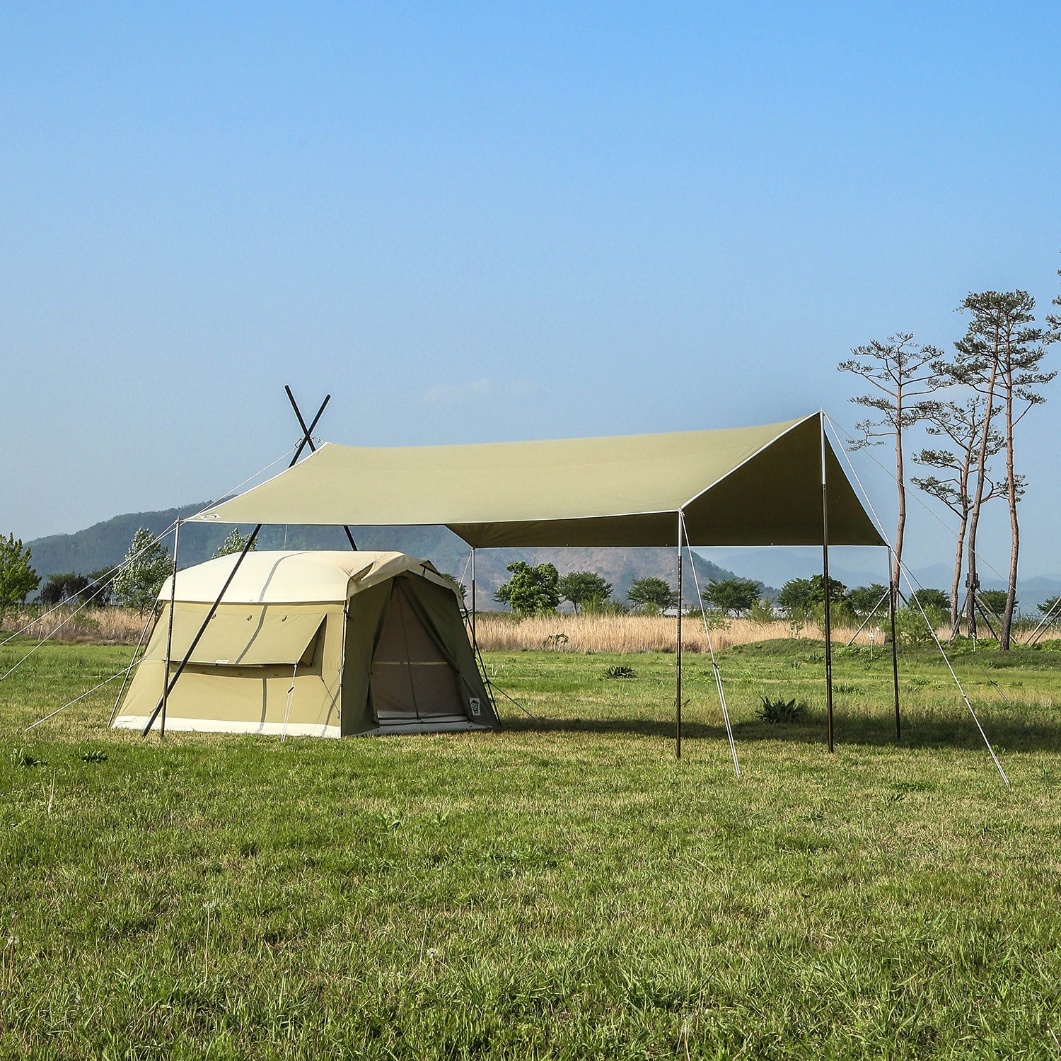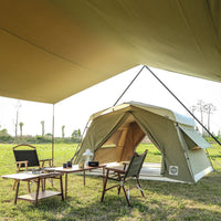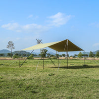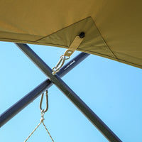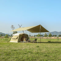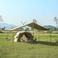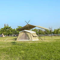 ソリオキャビンハウスと同素材で生産されたソリオタープは、耐久性があり、重量を考慮した超高密度コットン混紡T/C生地で作られています。綿40%、ポリエステル60%の混紡が特徴です。また、優れた遮光率と通気性を備えています。
