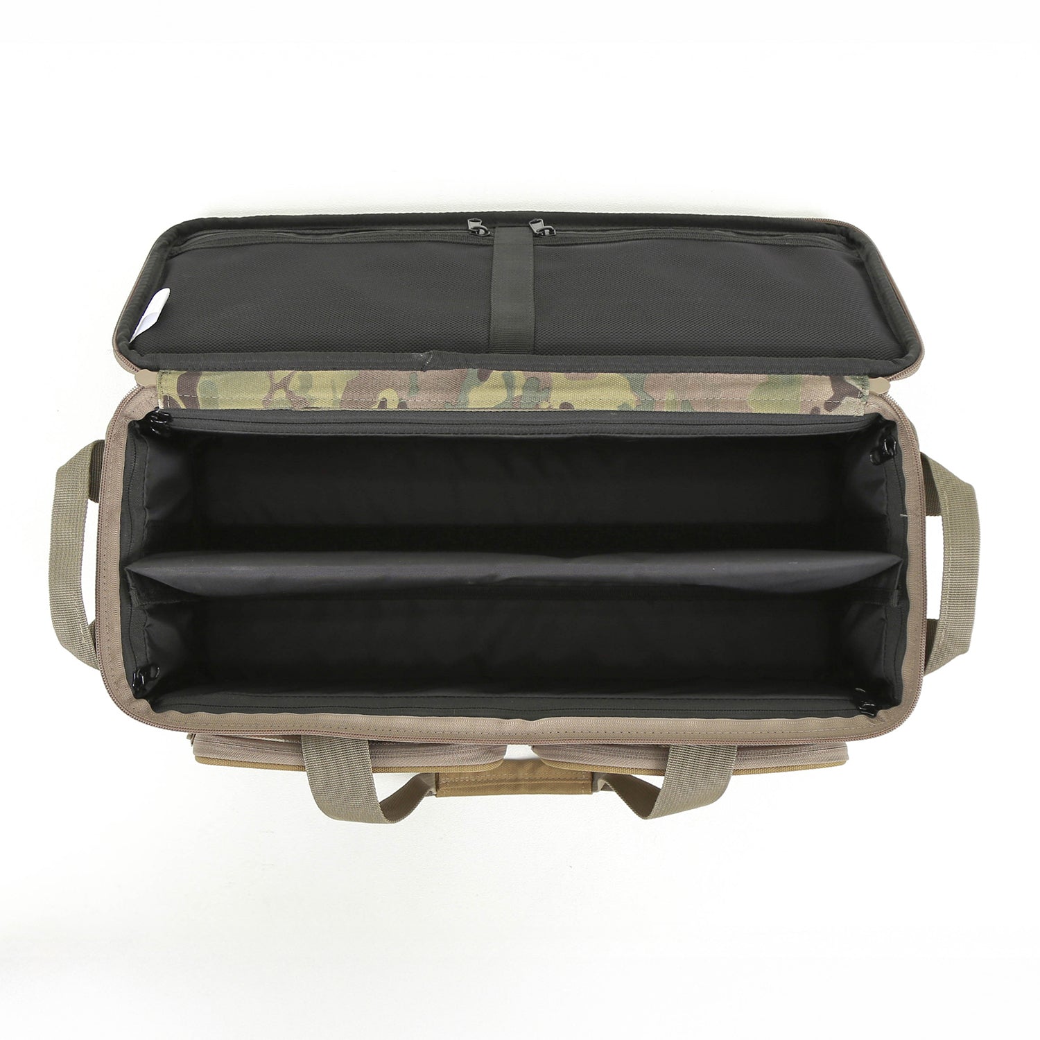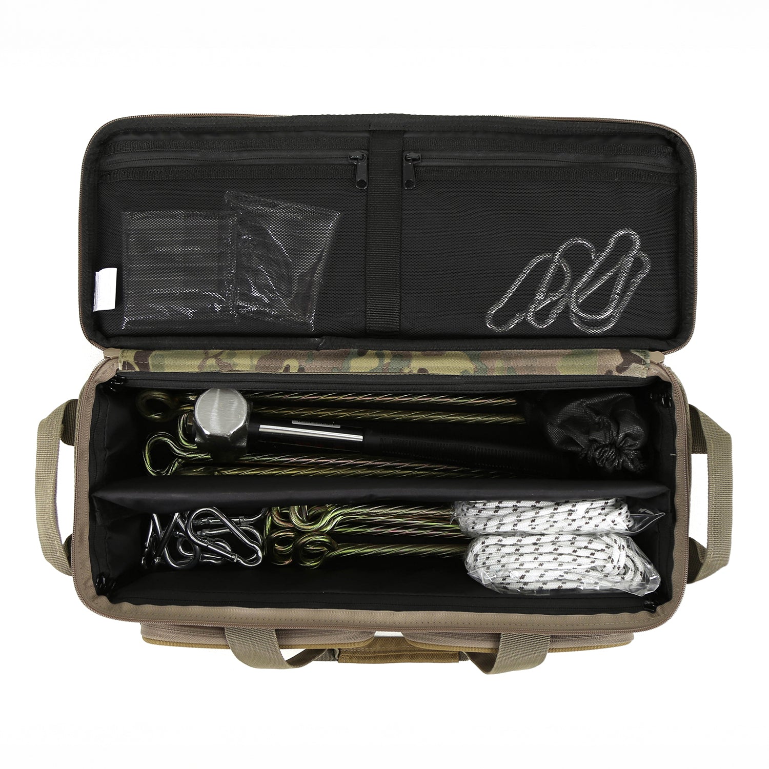 多彩な収納ポケットと着脱パーティション内部メッシュ収納ポケットとサイズ別外部ポケットはガイローブ、自在等様々な小物を種類別に収納可能です。着脱パーティションでキャンプ用途い合わせた使用ができます。 -